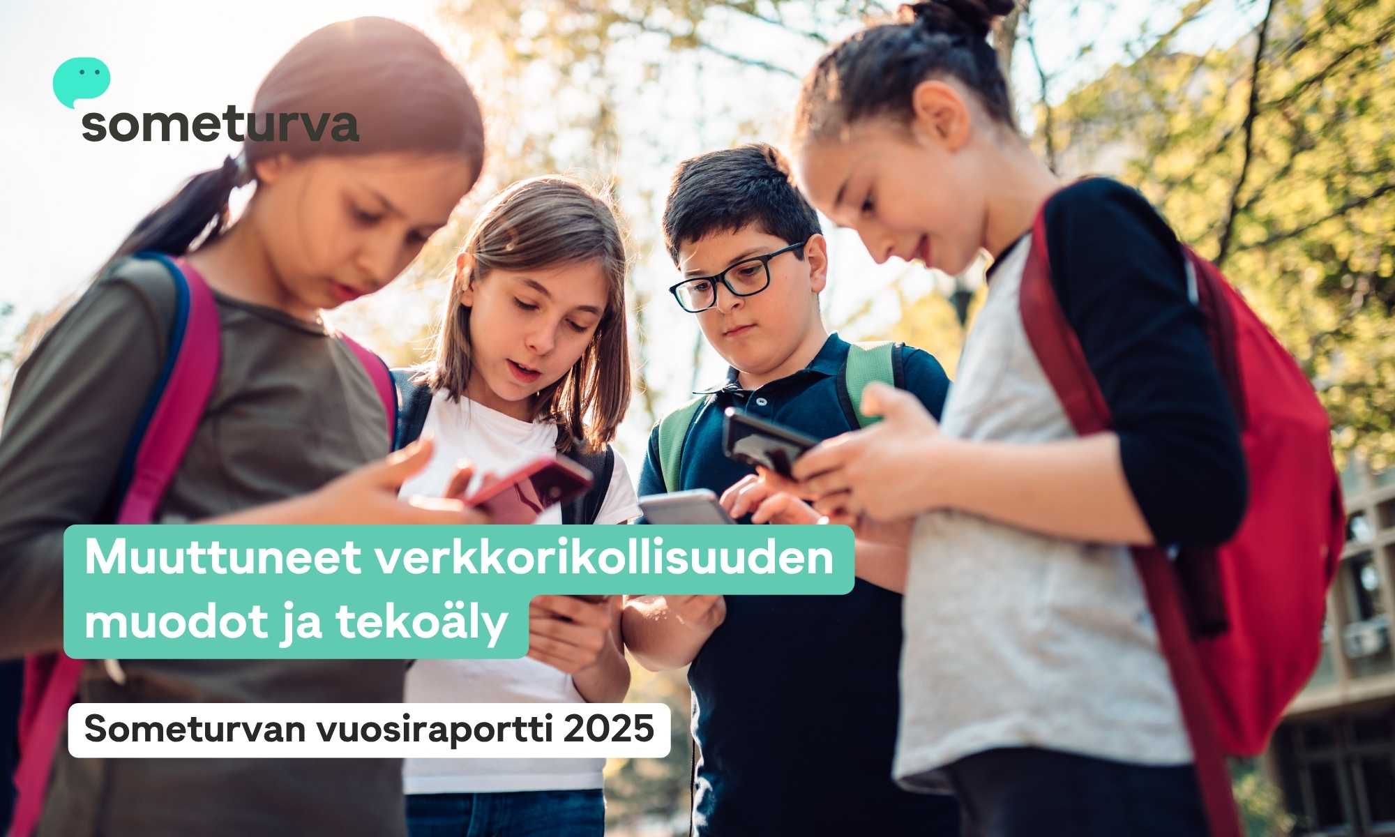 Täytä lomake ja lataa itsellesi Someturvan vuosiraportti 2024, jossa avaamme näköalaamme siihen, minkälaisia haasteita somehäirintä ja verkkorikollisuus tuovat kouluyhteisöille.